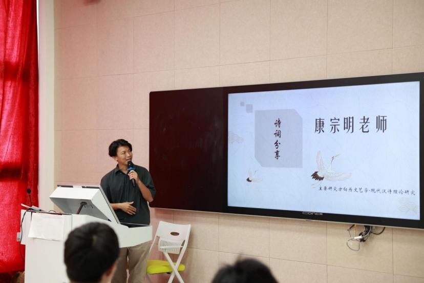 2023年11月25号下午3点,北海艺术设计学院图书馆读者协会在西校区图书馆智慧教室举办了主题为“赏诗词魅力,树文化自信”的读书分享活动。活动采取线上线下相结合、学习分享与集中交流相结合的方式进行,人文教育学院康宗明老师作为嘉宾首先上台分享了现代诗,通过康老师的分享把沙龙活动引入唯妙唯美的诗词意境!