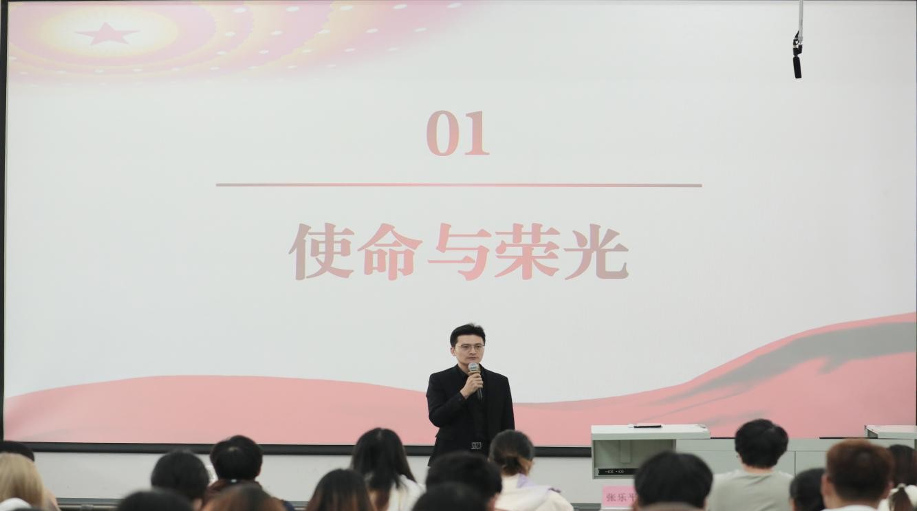 仪式最后,全体领导、老师与学员前往图书馆门前合影留念,定格这一具有纪念意义的时刻。合影结束后,学员们返回107教室,迎来本期青马工程的第一讲理论课程。建筑与环境艺术学院副院长张乐平老师以专业的视角、生动的讲解,为学员们带来了兼具理论深度与实践温度的授课,深化了大家对理论知识的理解,明晰了青年担当的方向。