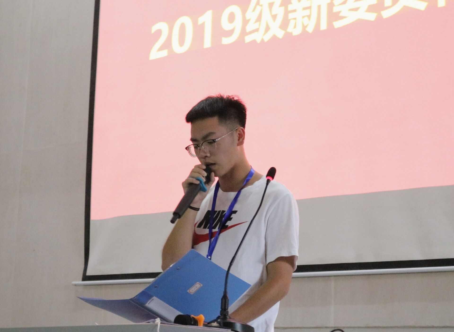 大会第二项,环境艺术学院分团委2019级新成员代表关翰林发表自己对将来的工作的期待。他用泰戈尔的《飞鸟集》:“天空没有留下翅膀的痕迹,但我已飞过。”一句表达了自己对分团委集体以及今后工作的尊敬和热爱。