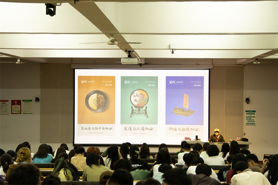 此次讲座中,张昕教授以非遗衍生品设计、非遗衍生品设计原理以及途径、国风灿烂走向世界三个版块向在场师生进行具体讲授。