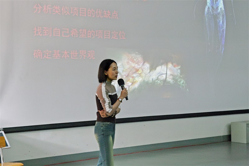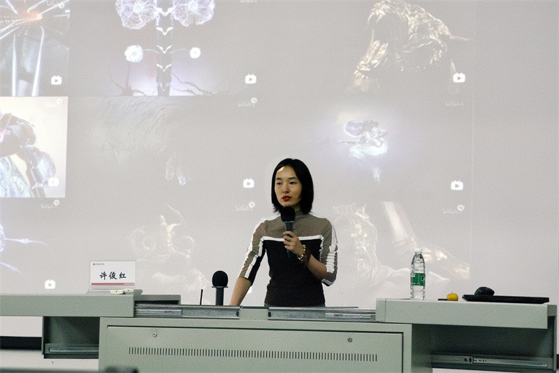 许俊红结合自身积累的工作经验与亲身经历,讲授了如何在实际工作岗位上有效地执行动画任务的主法和策略。一部完整的动画作品由无数的分镜头、精细的灯光效果、以及代入感强烈的音效共同构成,然而这仅仅是动画的表面呈现。在背后,美术团队、设计团队等多个团队需要进行精细的分工合作,并在导演的总体审美指导下,才能最终完成整个动画短片的创作。因此,团队协作能力和良好的沟通能力在动画制作过程中尤为重要。她启迪学生要学会与导演进行有效沟通,以更好呈现自已负责区域的良好审美创作。