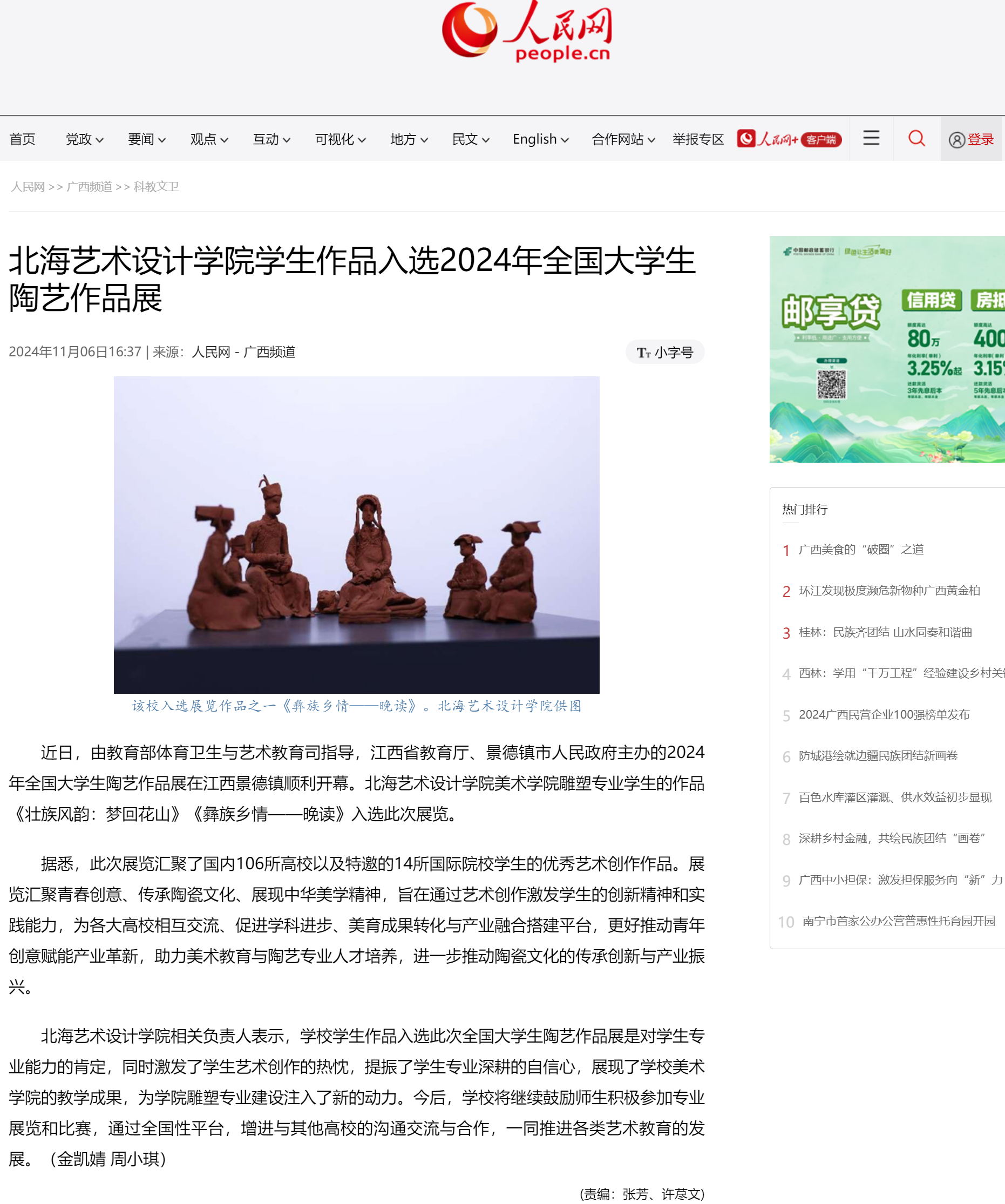 人民网:北海艺术设计学院学生作品入选2024年全国大学生陶艺作品展