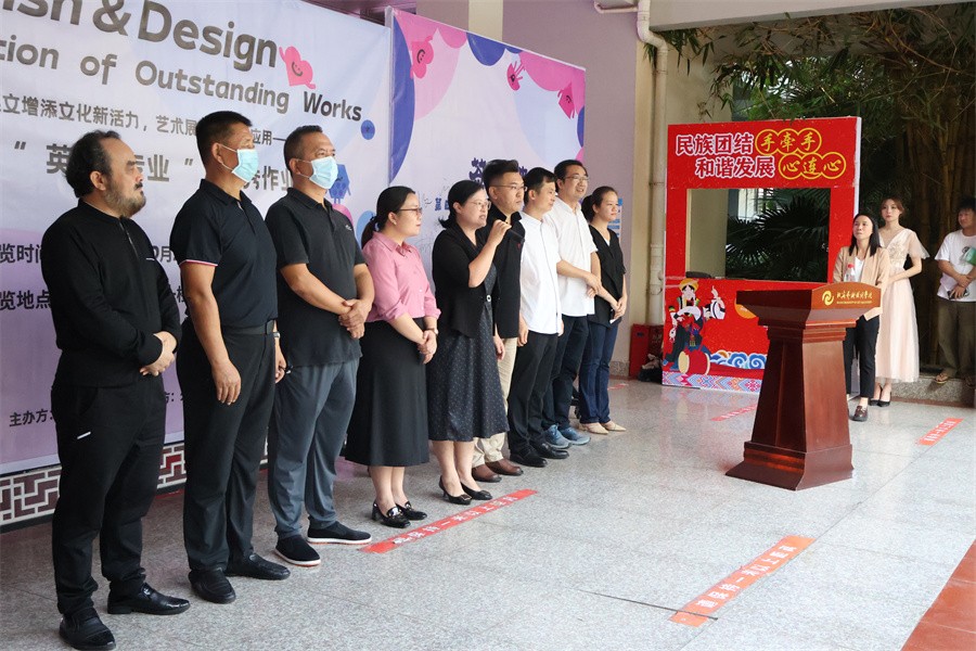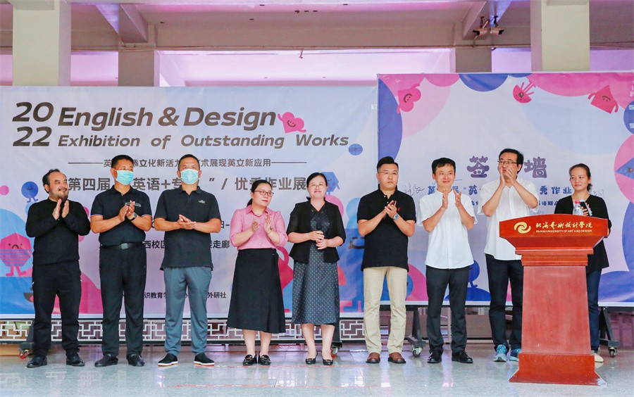 10月26日,由通识教育学院主办,外研社协办的“英文增添文化新活力,艺术展现英文新应用——第四届‘英语+专业’优秀作业展”于西校区公德楼一楼顺利开展。学校党委书记张阳、党委副书记韦静月、副校长邱杰出席仪式;第四党总支书记刘承初,通识教育学院副院长黄丹,通识教育学院党支部书记周斌,西北师范大学北海附中副校长杨旭东教授,广西教育学会美术专业委员会理事刘阳奎教授,高级室内设计师、收藏家龙文先生,美术学院雕塑专家波波夫·康斯坦丁应邀参加仪式。