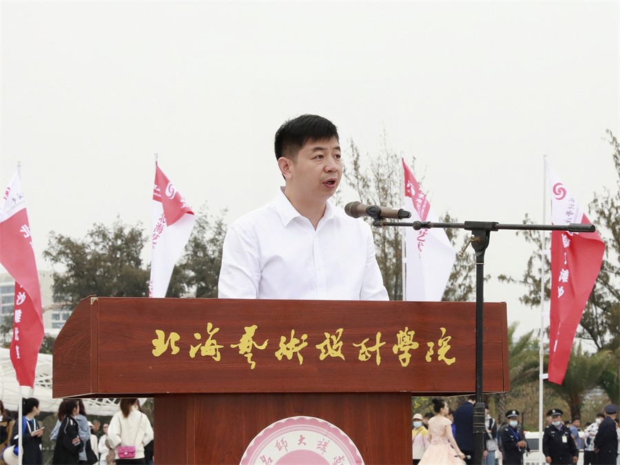 迎着北部湾灿烂的朝阳,4月8日 ,北海银滩沙雕比赛暨北海艺术设计学院沙滩运动会在北海市银滩公园举行。北海旅游集团有限公司副总经理李小军、学校党政领导、全校师生参加开幕式。