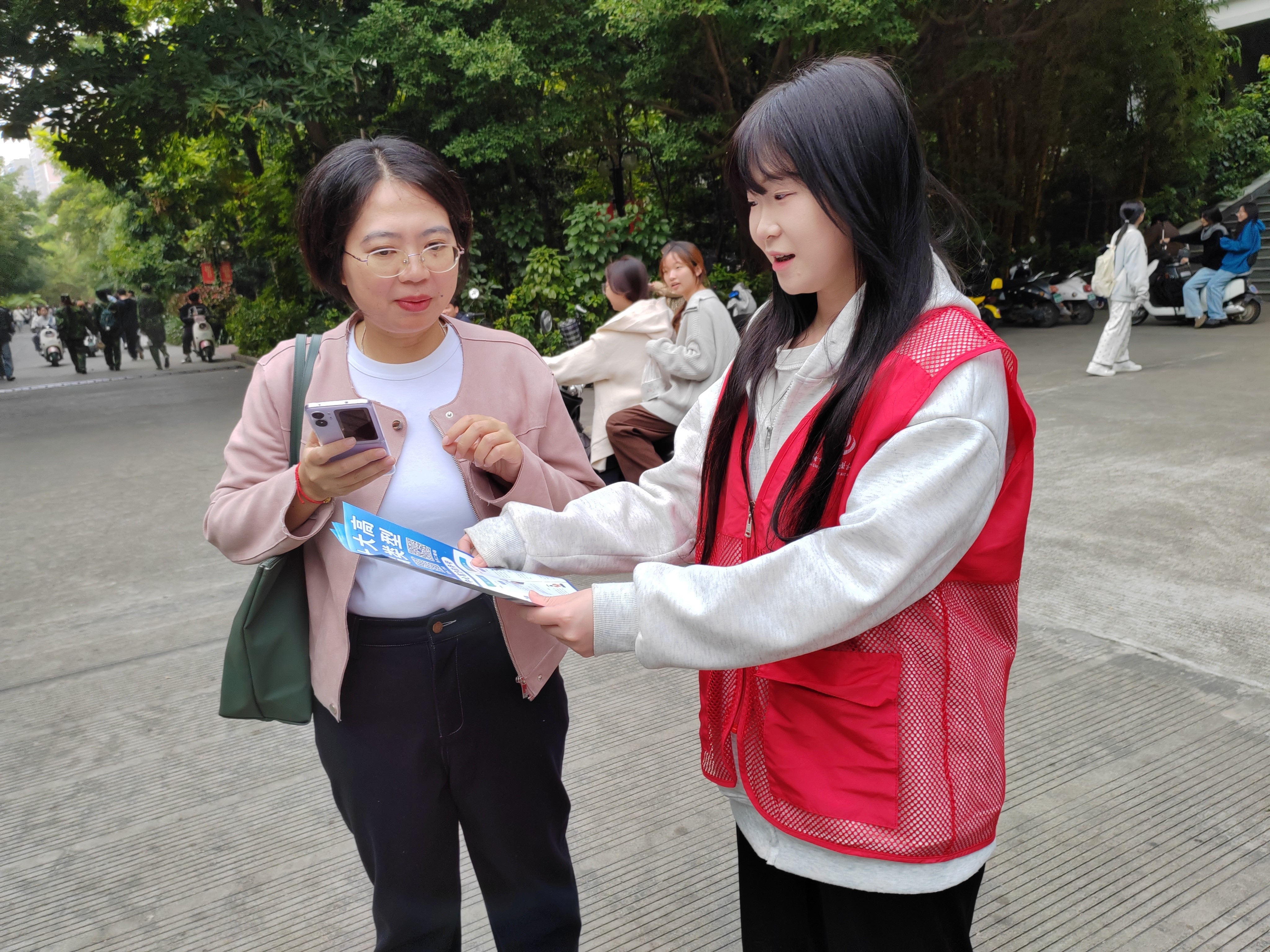现代技术日新月异,诈骗手段花样百出。活动中,志愿者们通过发放反诈宣传单,提醒同学们绷紧防范诈骗的安全弦,告诫同学们要明确认识到任何时候任何情况下,天上都不会掉馅饼,一定要看好自己的“钱袋子”。