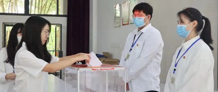 04 正式会议第四项议程,选举产生北海艺术设计学院第二十届学生会主席团成员,由六名候选人进行竞选陈述,投票环节随后进行。全体人员在监票人员的引导下有序进行不记名投票,现场秩序井然,氛围庄严神圣。