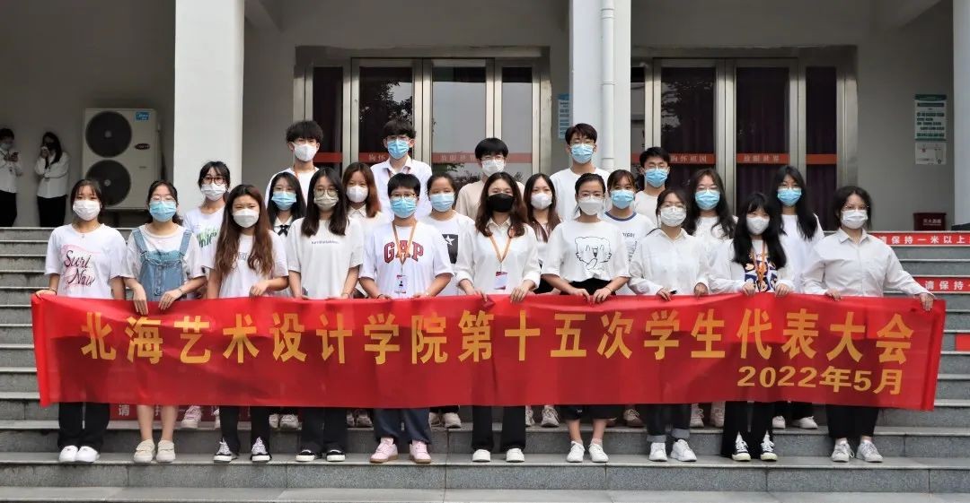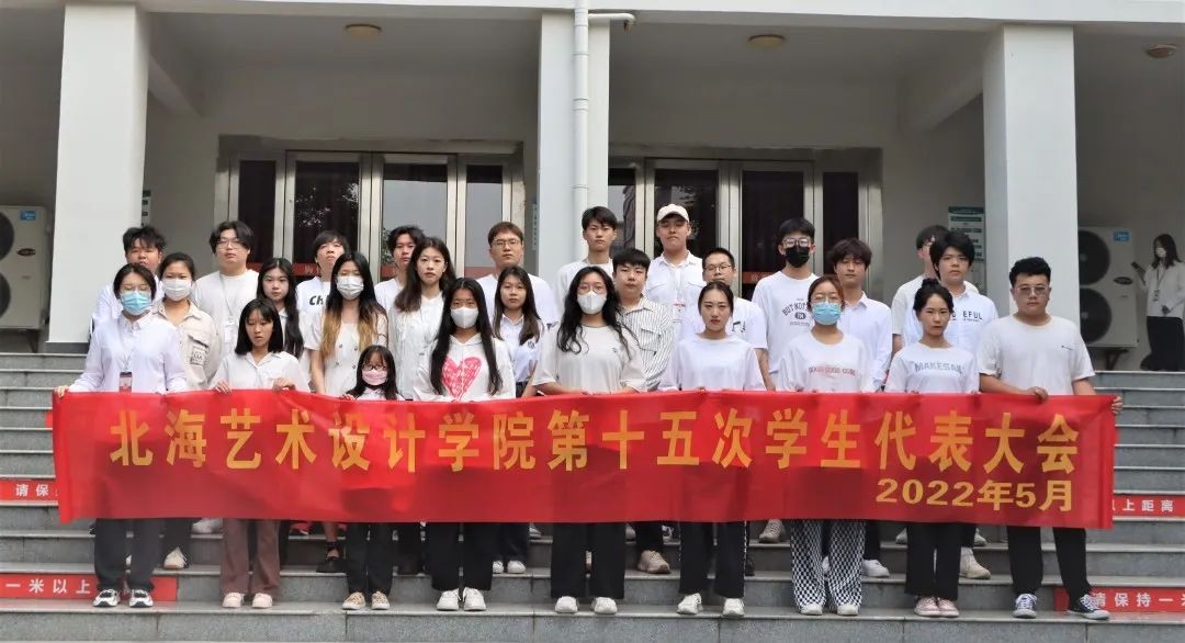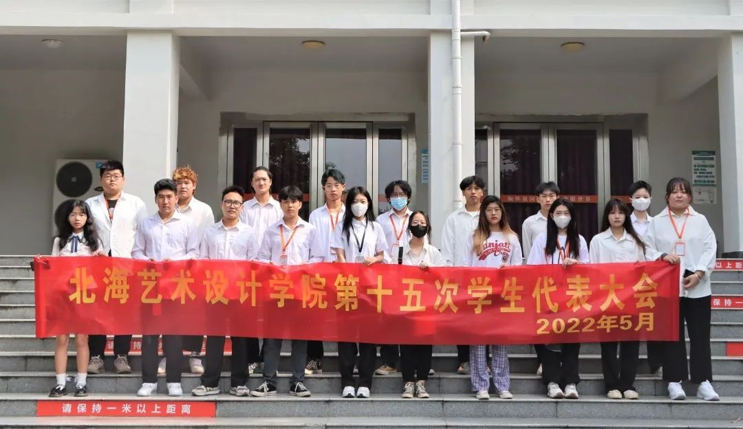 2022年5月21日,北海艺术设计学院第十五次学生代表大会在伦理楼107举行,各院系215名学生代表齐聚一堂。校党委副书记、副校长彭仁,校团委书记唐良春,校团委副书记宋慧敏,动画与传媒学院分团委书记巴瑞斌,设计艺术学院分团委书记王慧,建筑与环境艺术学院分团委书记雷勇,人文教育学院分团委副书记史晓菲,美术学院分团委老师许荣军共同出席了此次大会。