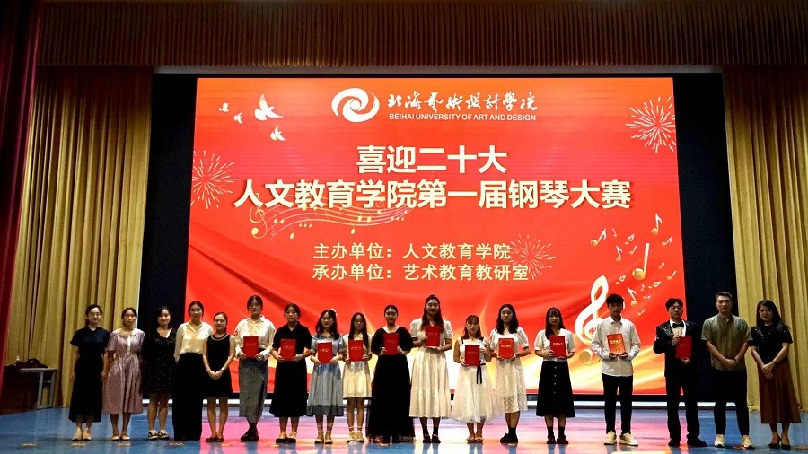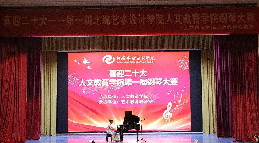 金秋十月,硕果累累2022年10月7日19时,由北海艺术设计学院人文教育学院主办,艺术教育教研室承办的“喜迎二十大--人文教育学院第一届钢琴大赛”,在西校区大礼堂隆重举行。北海艺术设计学院副校长王斌人文教育学院党总支书记刘承初院长熊秀峰副院长李水亮副院长李谦总支副书记邓欢,应邀出席大赛