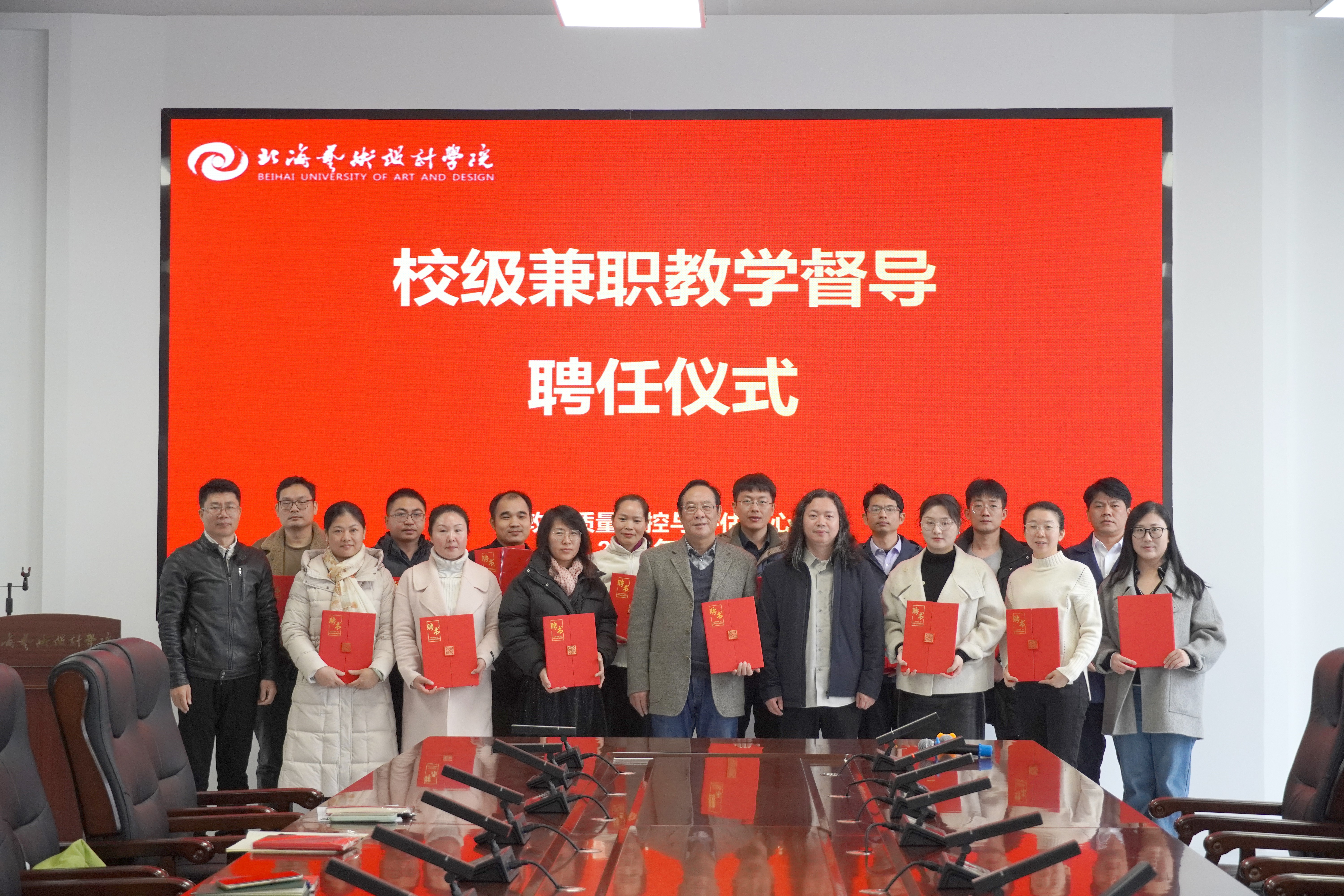 会议最后,举行了督导聘任仪式胡常务及孙主任为新一届校级督导组成员颁发聘书,并合影留念。 此次会议为新学期教学督导工作明确了方向,为学校教学质量提升提供了有力保障,同时也为接下来的审核评估奠定了基础,为学校的长远发展筑牢根基。(郭松/摄)