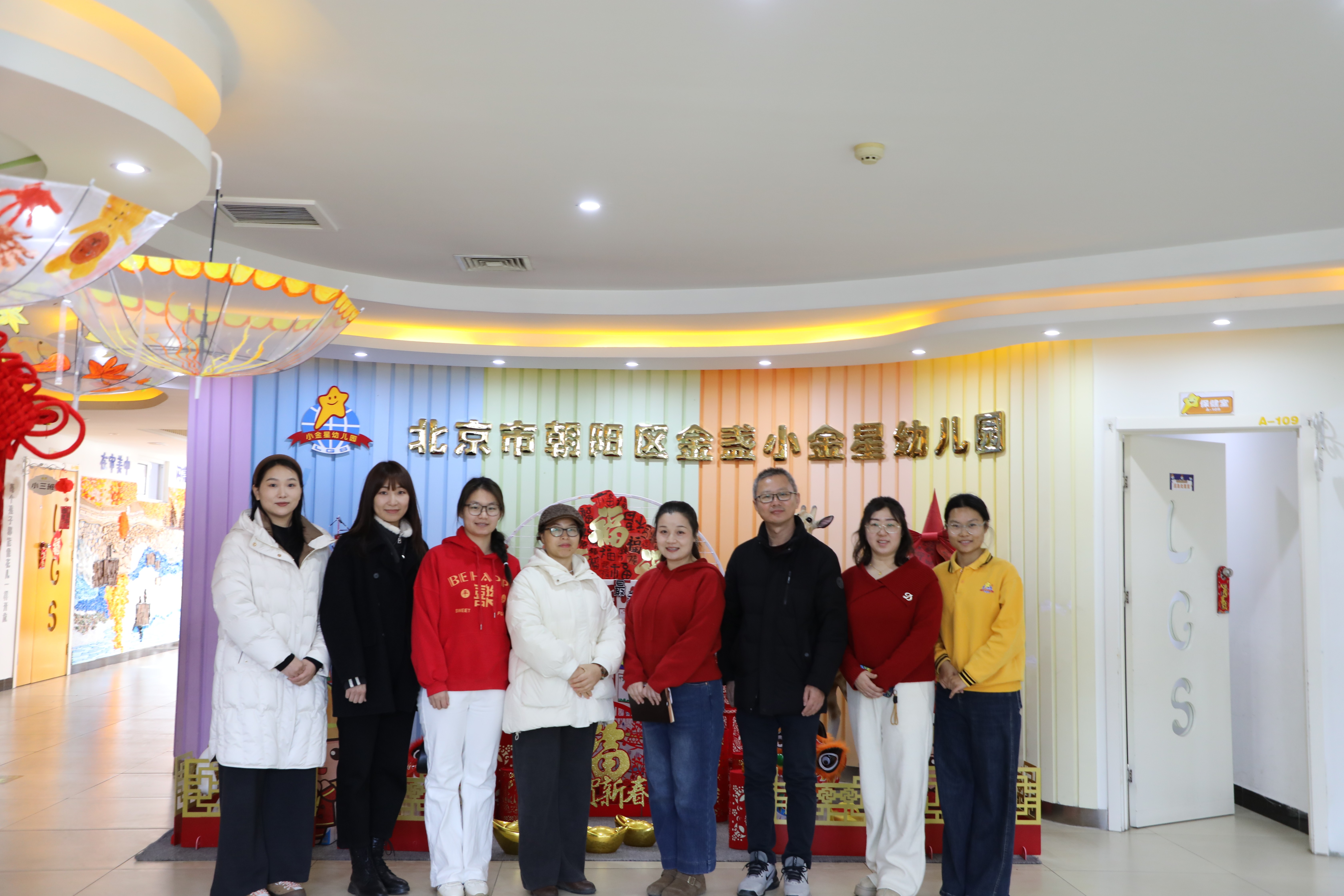 为进一步深化学前教育人才培养改革和推进2026届毕业生就业工作,2025年12月28日学校王斌总督学、教育学院熊秀峰院长、北京实践基地严腾副主任及学院教师胡朝敏、王飞前往实践基地北京市朝阳区金盏小金星幼儿园开展考察交流活动并探望2026届毕业实习学生。