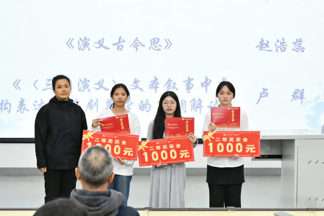 至此,本次颁奖典礼圆满落幕。此次活动不仅为同学们搭建了一个以文会友、碰撞思想的平台,更在校园内营造了崇尚经典、热爱阅读的良好氛围。未来,文学院也将以赛促学,以活动为载体,继续深耕人文教育,鼓励学子与经典对话汲取智慧、不断成长,让人文之光点亮青春、思辨之花在校园绽放。(吴正玉/摄)