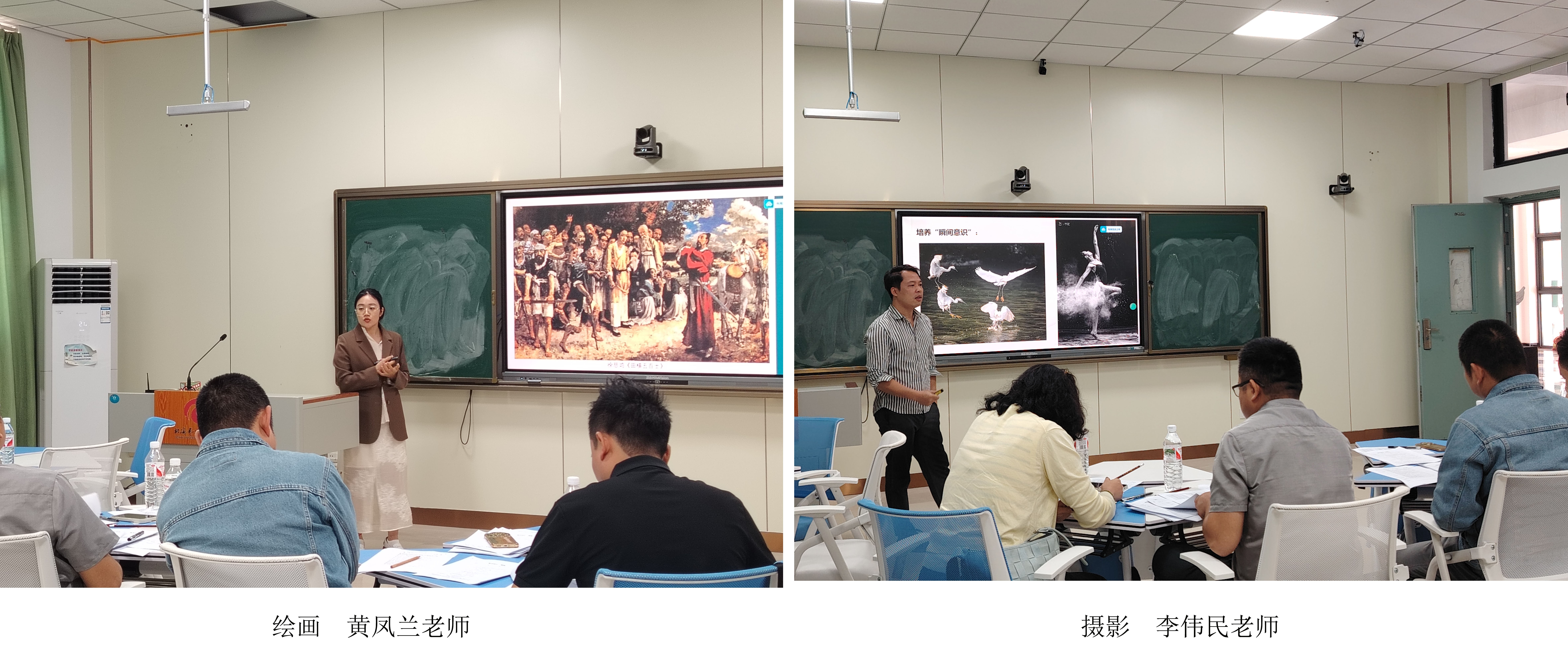 本次参加学院初赛的11名教师是通过学院海选由绘画、雕塑、摄影、美术学四个教研室择优推选而出,参赛选手既有经验丰富的老教师,也有刚入职的年轻教师。各位教师在比赛中充分展现了自己的教学能力和水平,展示了各自的思政教学特色。他们把广西地域特色,日常生活中,平常教学中诸多与学生生活密切相关、生动感人的思政案例引入课堂,推动了思政元素与专业课程的有机融合,向在场的评委呈现了一堂堂教法灵活、讲练结合的公开课,得到了评委们的认可。