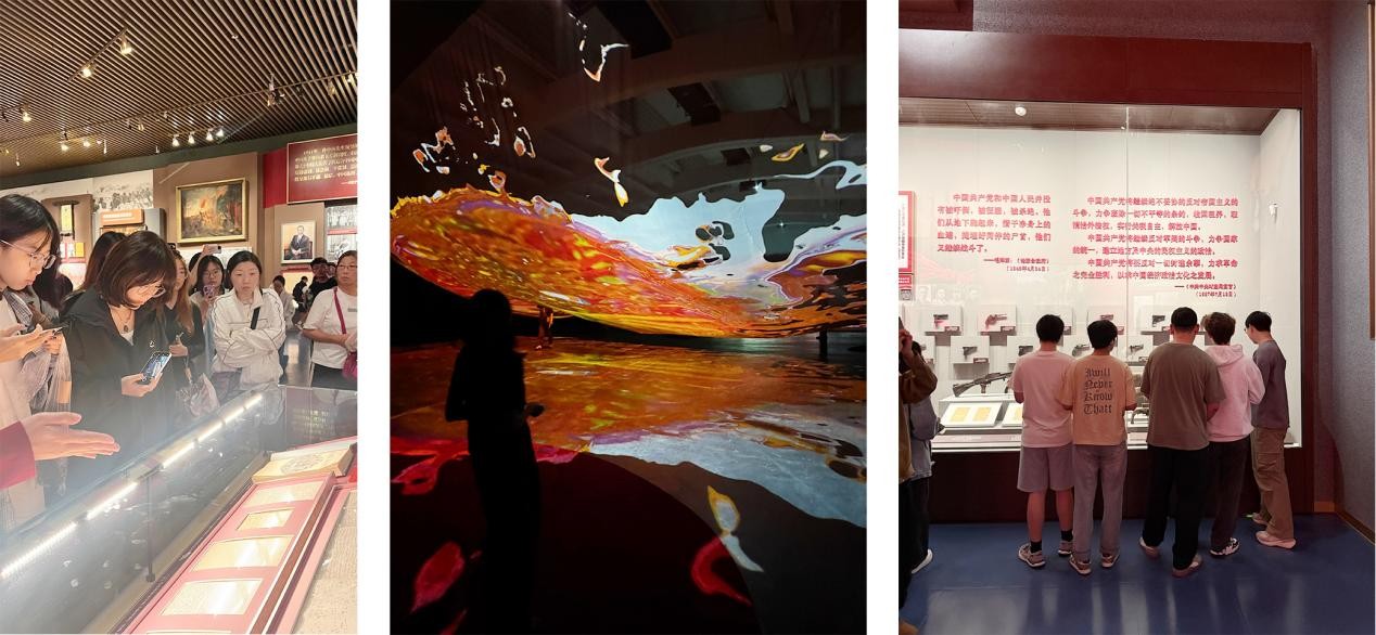 中国共产党历史展览馆作为红色教育基地,为同学们提供了一堂生动的“行走的思政课”。学生们在参观过程中,不仅通过丰富的史料深化了对党史的理解,更以环境设计专业视角,重点关注展陈空间的叙事逻辑、参观体验营造——从空间布局如何引导参观节奏,到灯光设计如何突出展品重点,再到材质选择如何传递历史厚重感,深刻领悟“设计服务主题、空间承载精神”的专业价值,为红色文化空间设计积累了思路。