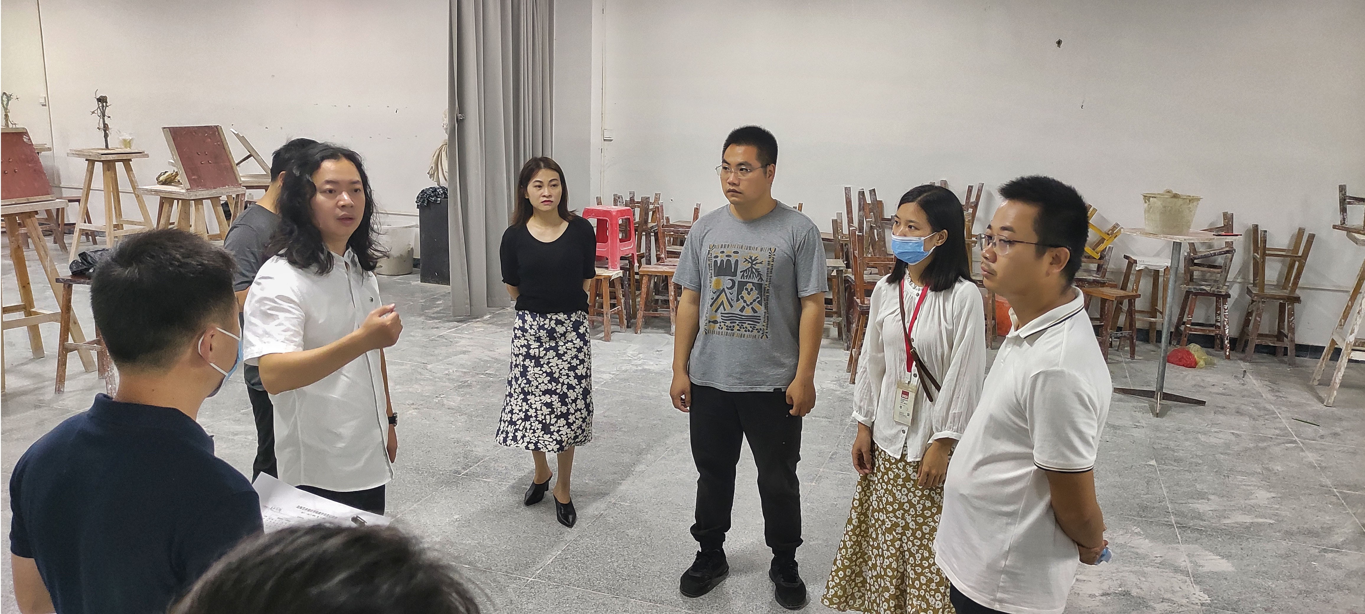 9月13日美术学院分管校领导胡胜副校长在副院长龚为带领下检查了我院开学第一天的教学情况。教务处和学校督导办公室对教师教学、学生出勤等教学情况进行了随机巡查。