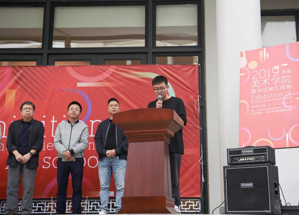 常务副校长贺争平发表讲话,他对美术学院全体师生的共同努力表示赞赏,希望以本次教学成果汇报展为开端,积极开展教学上的改革和探索,砥砺前行,促进美术学院的专业教学再上一个新台阶,祝愿大家在2020年能取得更好的成绩。