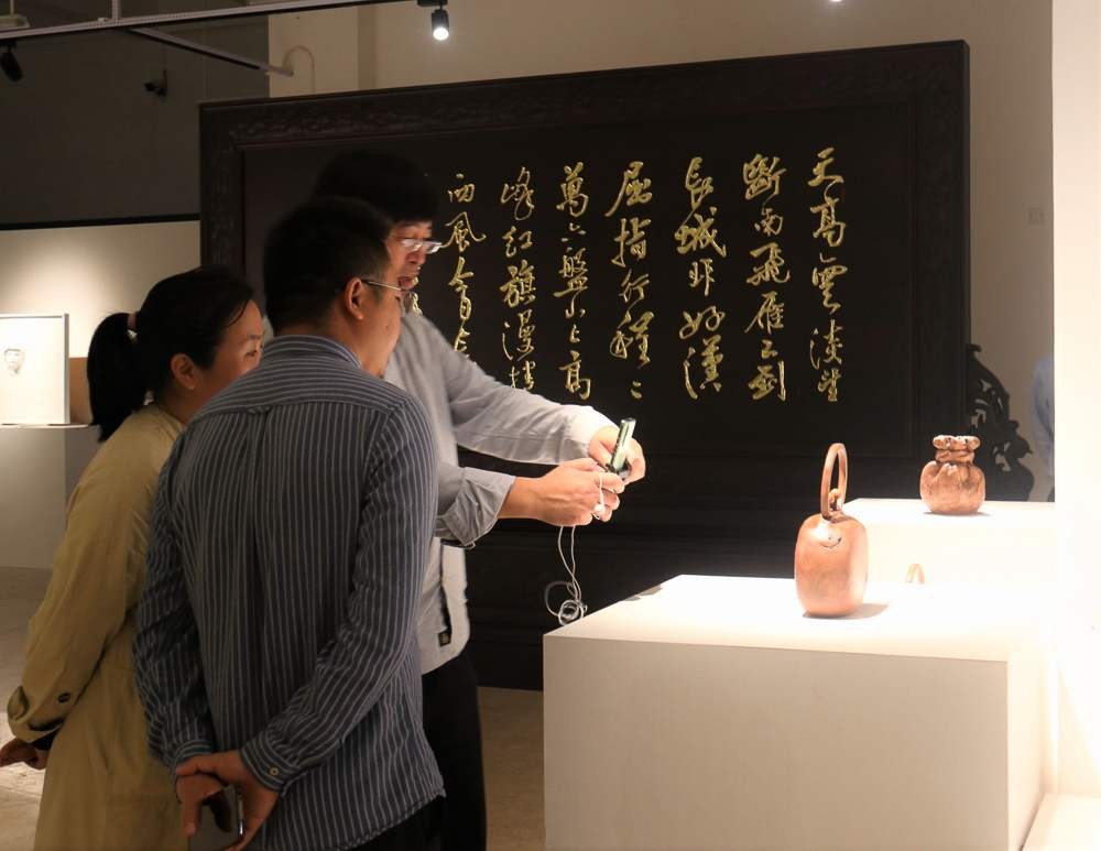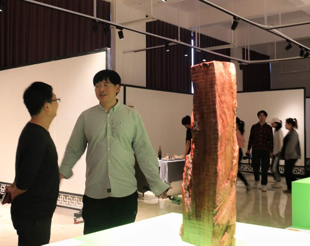 在展览中,学校领导有幸来到了展览现场观看展览,对每件作品都认真审阅,并由雕塑专业老师详细讲解了作品的形式与内涵。对这次展览的成功举办非常赞许,对学生的学习成果也是非常满意。