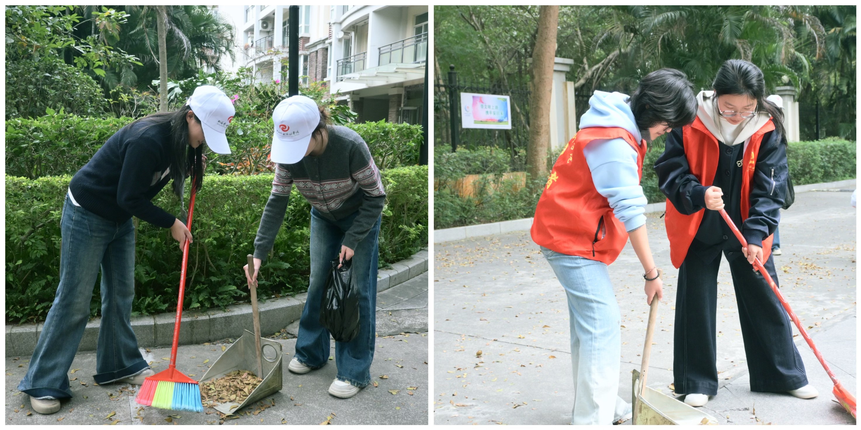 志愿者们协作清扫社区卫生