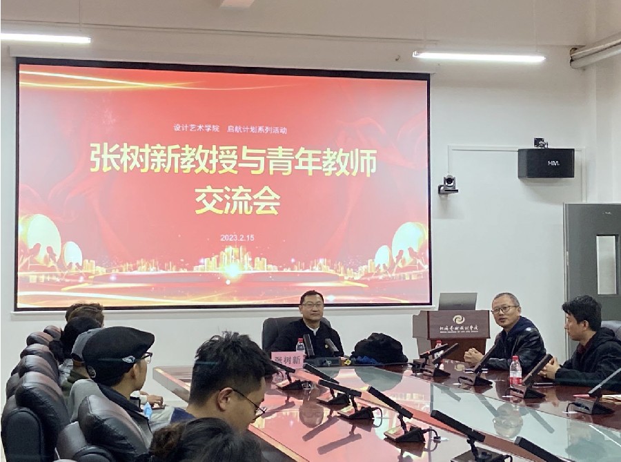 2023年2月15日晚,我院在西校区图书馆5楼会议室开展了张树新教授与青年教师交流会。本次交流会由北海艺术设计学院副校长王斌主持,参会人员有我院副院长白建强、副院长李佩及各教研室主任和青年教师。