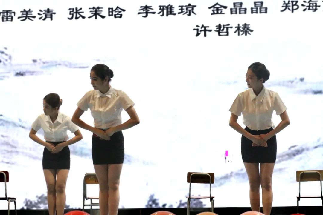 本次大赛总共分为三个部分,首先各个参赛队伍先进行礼仪展示环节进行表演,同时在整场比赛中插入有奖竞猜环节,最后再由评委老师对优胜队伍颁发证书,全体合作人员合影留念。