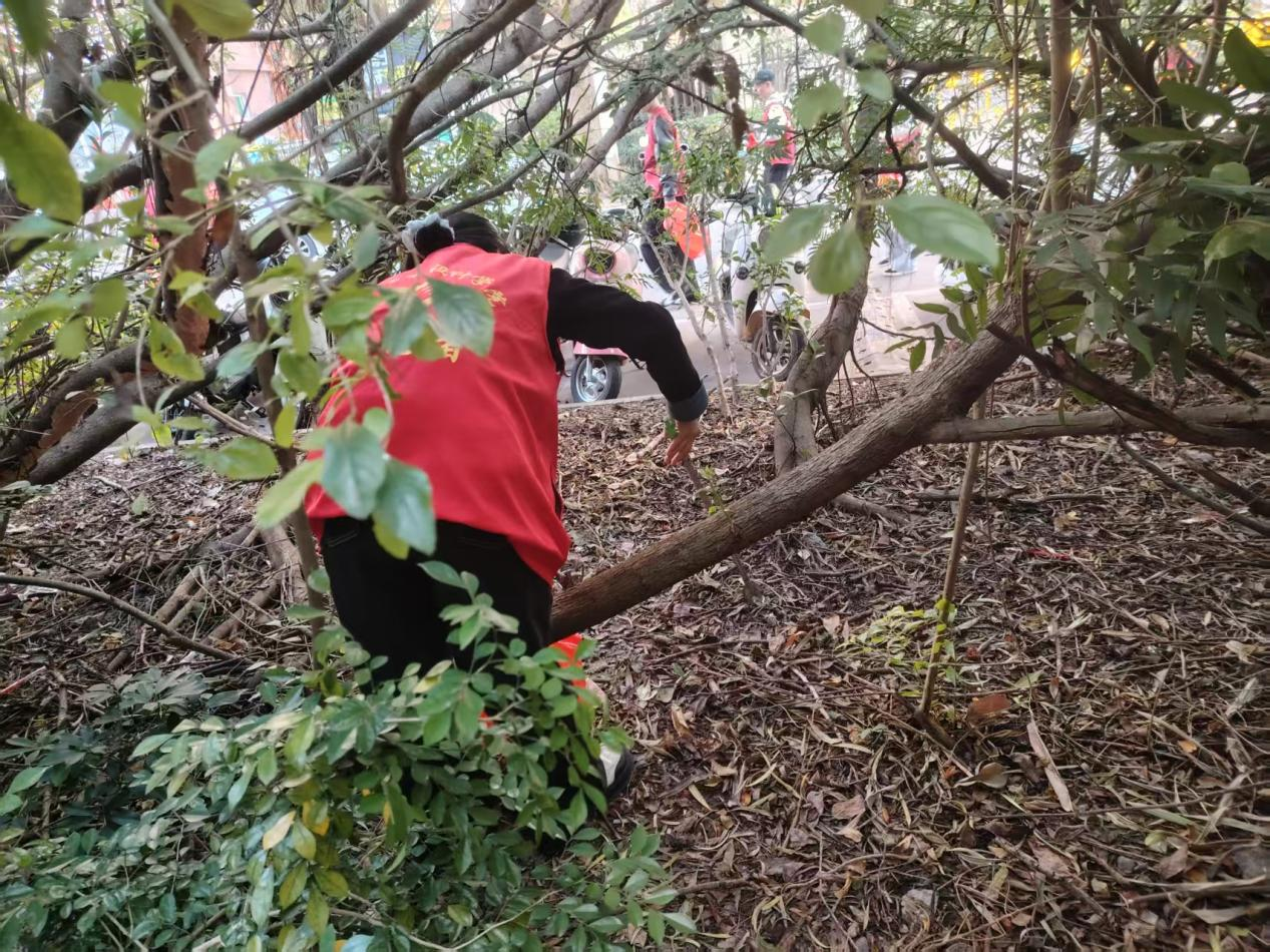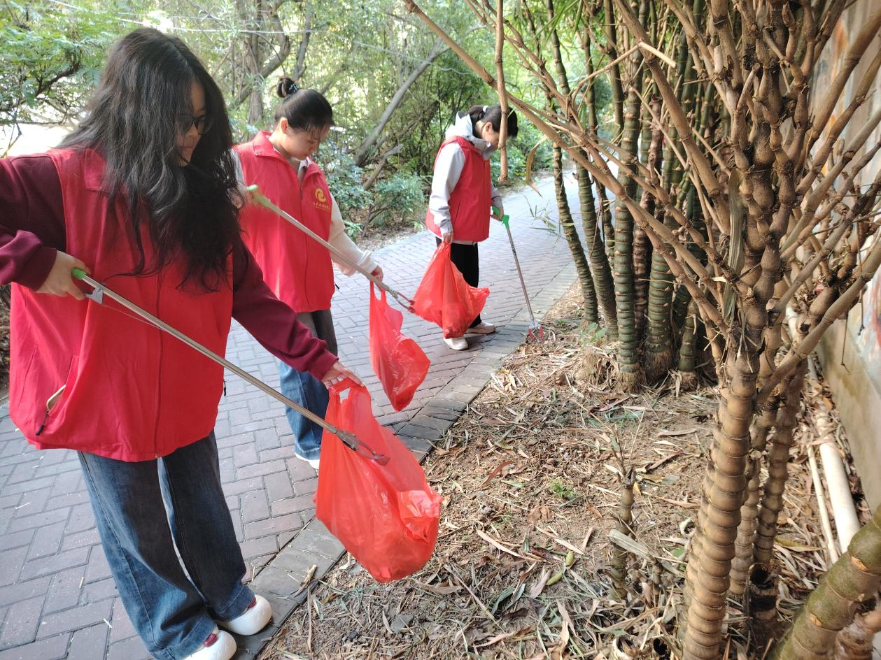 在指定卫生责任区,志愿者们统一身着志愿者服装,携带清洁工具分工协作,对区域内的落叶、杂物、卫生死角进行全面清理,以实际行动践行“为群众办实事”的初心使命。