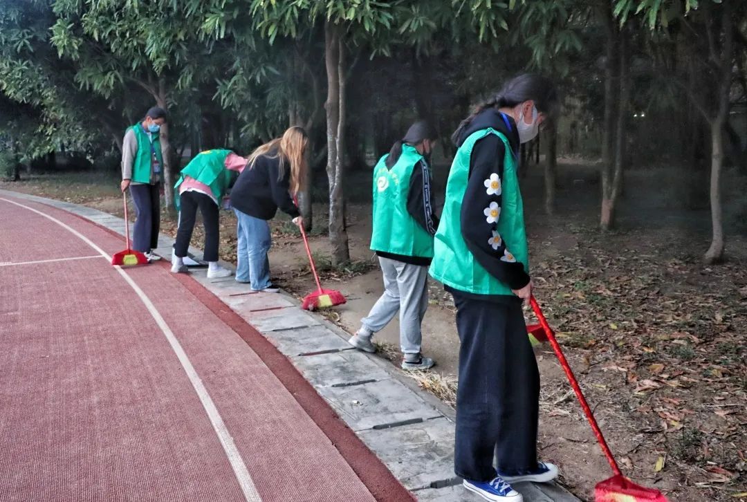 每天参与活动的志愿者被分为五小组,由组长带队分别在西校区十一栋女寝旁、西校区篮球场、西校区操场及周边、东校区操场及周边、东校区篮球场等地进行垃圾清理。