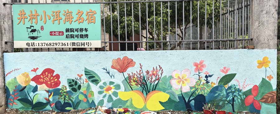 在墙绘作品创作过程中,师生团队深入挖掘井山村历史文化底蕴,将红色革命故事、农耕生活的智慧与勤劳以及生态旅游的绿色发展理念巧妙融入作品,同时与村民紧密合作,共同参与到墙绘项目的每一个细节,激发村民对本土文化的认同感和自豪感。创作后期,还组织了多次文化交流活动,为村庄带来了更多的人气和旅游资源。墙绘与乡村旅游的深度融合,有效地吸引了游客量,带动周边民宿发展、助力农产品销售增收,用艺术元素激活乡村旅游,促进实现“美环境”与“富口袋”的双向提升。