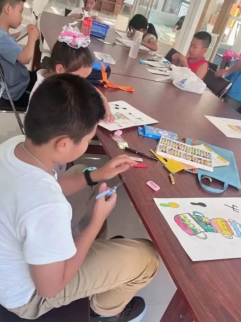 在北部湾社区,志愿者们用绘画和剪纸相结合的方式,教会孩子们做出以“杯子”为主题的作品。孩子们有的用水彩笔,有的用油画棒,他们都在用自己最喜欢的方式,用自己最熟悉的工具,一步一步创造出具有自己风格的作品。别看这小小一幅画,这可是孩子们用心的成果,他们看着自己的画作,露出了满意的笑容。
