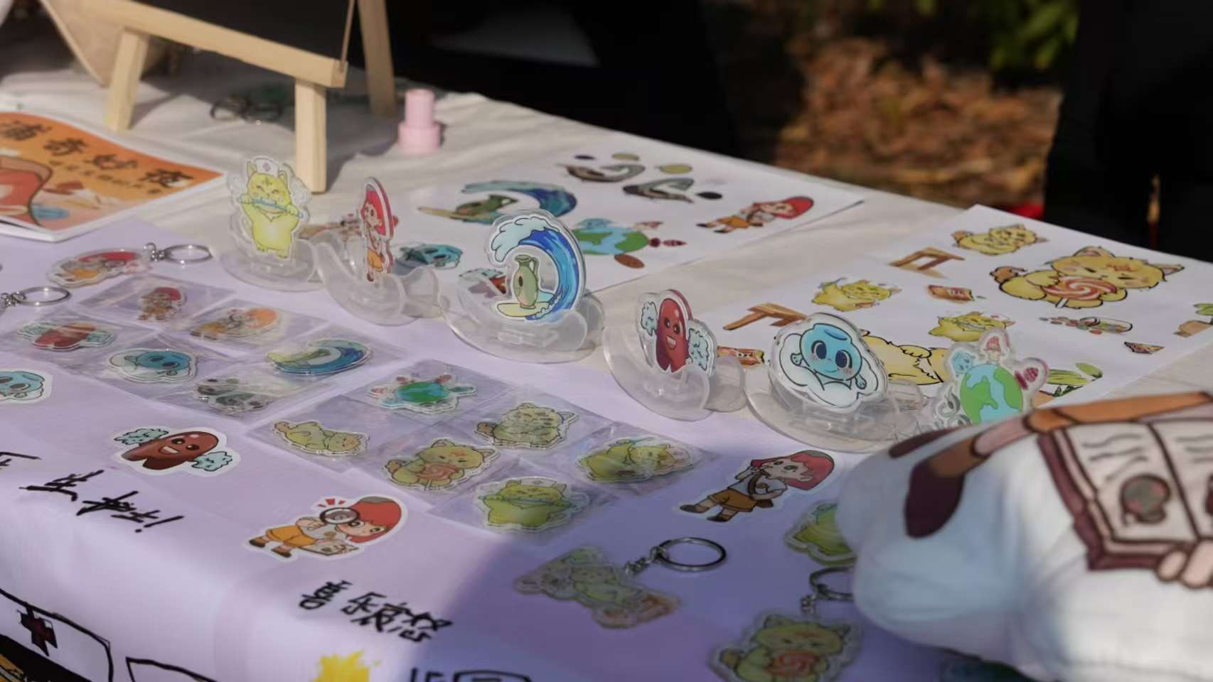 系列课程结束后,一场特殊的爱心义卖在校园内开展。义卖摊位上,每一幅作品都承载着孩子们的童真与梦想。志愿者们为福利院儿童创作的动漫文创IP引得过往师生驻足选购。